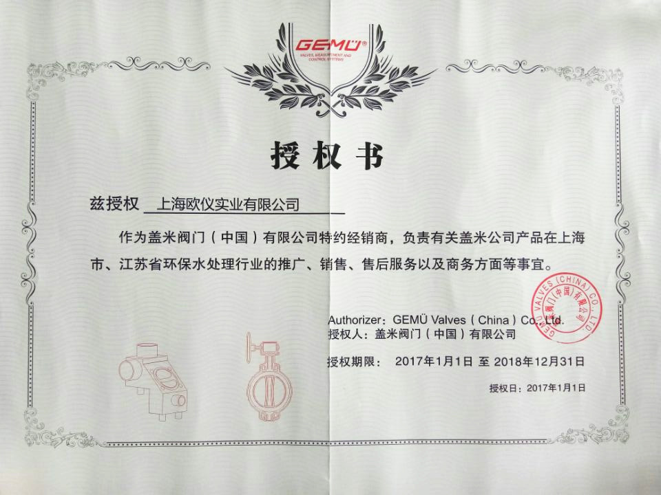 • 德國GEMU蓋米閥門授權書